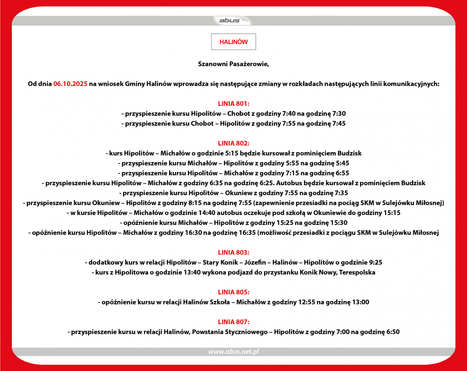 ROZKŁADY JAZDY OBOWIĄZUJĄCE OD 15.10.2025